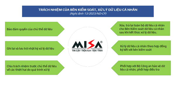 Đồng thời, Nghị định cũng quy định rõ ràng trách nhiệm của các bên kiểm soát và xử lý dữ liệu cá nhân như MISA, bao gồm: bảo đảm quyền của chủ thể dữ liệu, ghi lại và lưu trữ nhật ký xử lý dữ liệu; xử lý dữ liệu cá nhân theo hợp đồng ký kết; chịu trách nhiệm trước chủ thể dữ liệu; xóa, trả lại toàn bộ dữ liệu cá nhân sau khi kết thúc xử lý dữ liệu; phối hợp với Bộ Công an bảo vệ dữ liệu cá nhân.