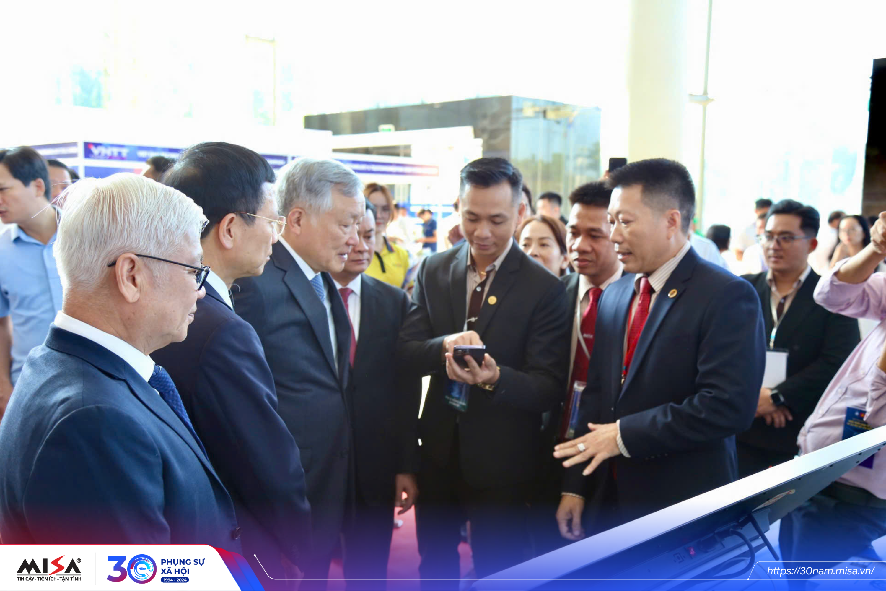 Trong khuôn khổ diễn đàn, các lãnh đạo đã có chuyến tham quan gian hàng triển lãm trưng bày giải pháp chuyển đổi số. Tại gian hàng MISA, Uỷ viên Bộ Chính trị, Phó Thủ tướng Thường trực Chính phủ Nguyễn Hòa Bình; Uỷ viên Trung ương Đảng, Bộ trưởng Bộ TT&TT Nguyễn Mạnh Hùng cùng lãnh đạo các Bộ, ban, ngành, địa phương đã trực tiếp lắng nghe Phó Tổng Giám đốc MISA Lê Hữu Nguyên chia sẻ về hệ sinh thái số ứng dụng trợ lý trí tuệ nhân tạo MISA AVA như Nền tảng quản trị tài chính Nhà nước MISA FinGov, Nền tảng quản trị doanh nghiệp hợp nhất MISA AMIS… Các lãnh đạo đánh giá cao hệ sinh thái ứng dụng AI của MISA và kỳ vọng MISA tiếp tục nghiên cứu đổi mới, sáng tạo nhiều giải pháp chuyển đổi số góp phần thúc đẩy phát triển kinh tế số, xã hội số nước nhà.