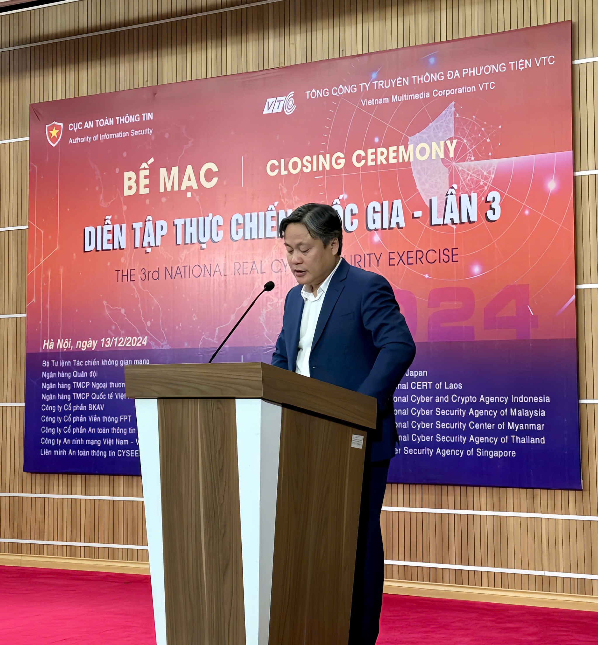 Thực hiện chỉ đạo của Bộ Thông tin và Truyền thông, Cục An toàn thông tin đã phối hợp với Tổng Công ty Truyền thông đa phương tiện – VTC, tổ chức thành công đợt Diễn tập thực chiến quốc gia năm 2024 lần thứ 3. Diễn tập diễn ra trong 12 ngày (~2 tuần), bắt đầu từ 09h00 ngày 04/11/2024 đến 17h00 ngày 15/11/2024, lễ bế mạc, tổng kết đã được tổ chức vào ngày 13/12/2024 vừa qua.