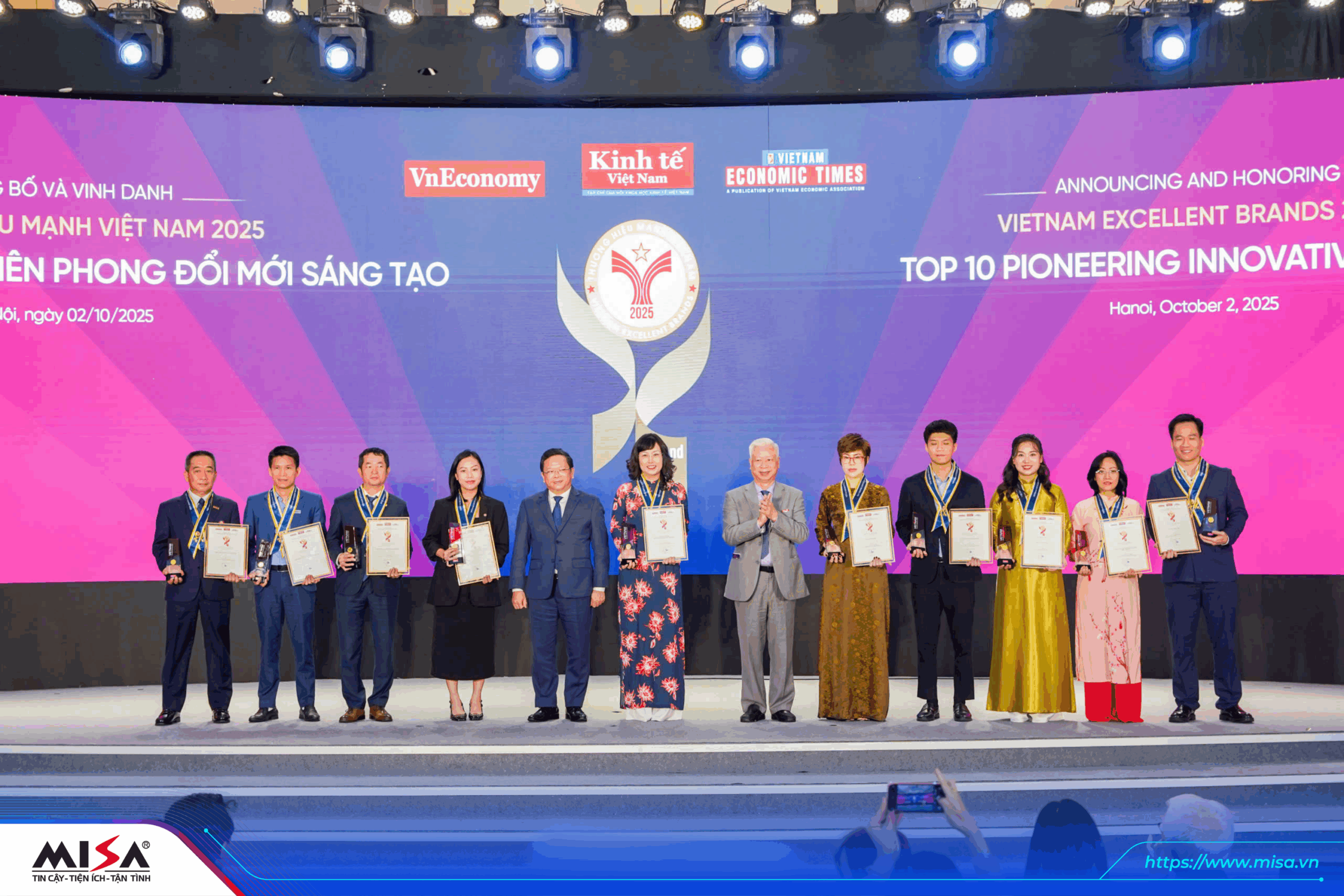 Với chủ đề “Doanh nghiệp vươn tầm”, chương trình Thương hiệu Mạnh Việt Nam 2025 đã khảo sát, bình xét, công bố và vinh danh các doanh nghiệp có thành tích nổi bật trong hoạt động sản xuất, kinh doanh, thương mại và dịch vụ, có những dấu ấn nổi bật trong đổi mới sáng tạo và năng lực vươn tầm quốc tế, hội nhập với thế giới,đóng góp vào mục tiêu tăng trưởng cao của Việt Nam trong những năm tiếp theo. Vượt qua những tiêu chí khắt khe của giải thưởng, MISA vinh dự là Top 10 thương hiệu mạnh tiên phong đổi mới sáng tạo 2025.