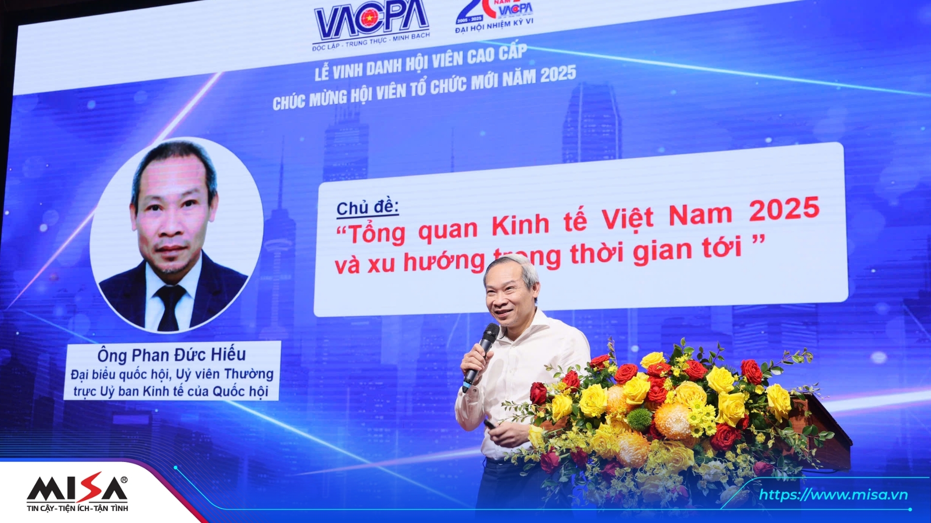 Cũng trong khuôn khổ Lễ ký kết, ông Phan Đức hiếu – Đại biểu quốc hội, Uỷ viên Thường trực Uỷ ban Kinh tế của Quốc hội đã chia sẻ về “Kinh tế Việt Nam 2025 và xu hướng trong thời gian tới”, mang đến những phân tích sâu sắc và dự báo quan trọng, giúp hội viên nắm bắt bối cảnh kinh tế, từ đó chủ động xây dựng chiến lược phát triển bền vững và nâng cao năng lực cung cấp dịch vụ kiểm toán.