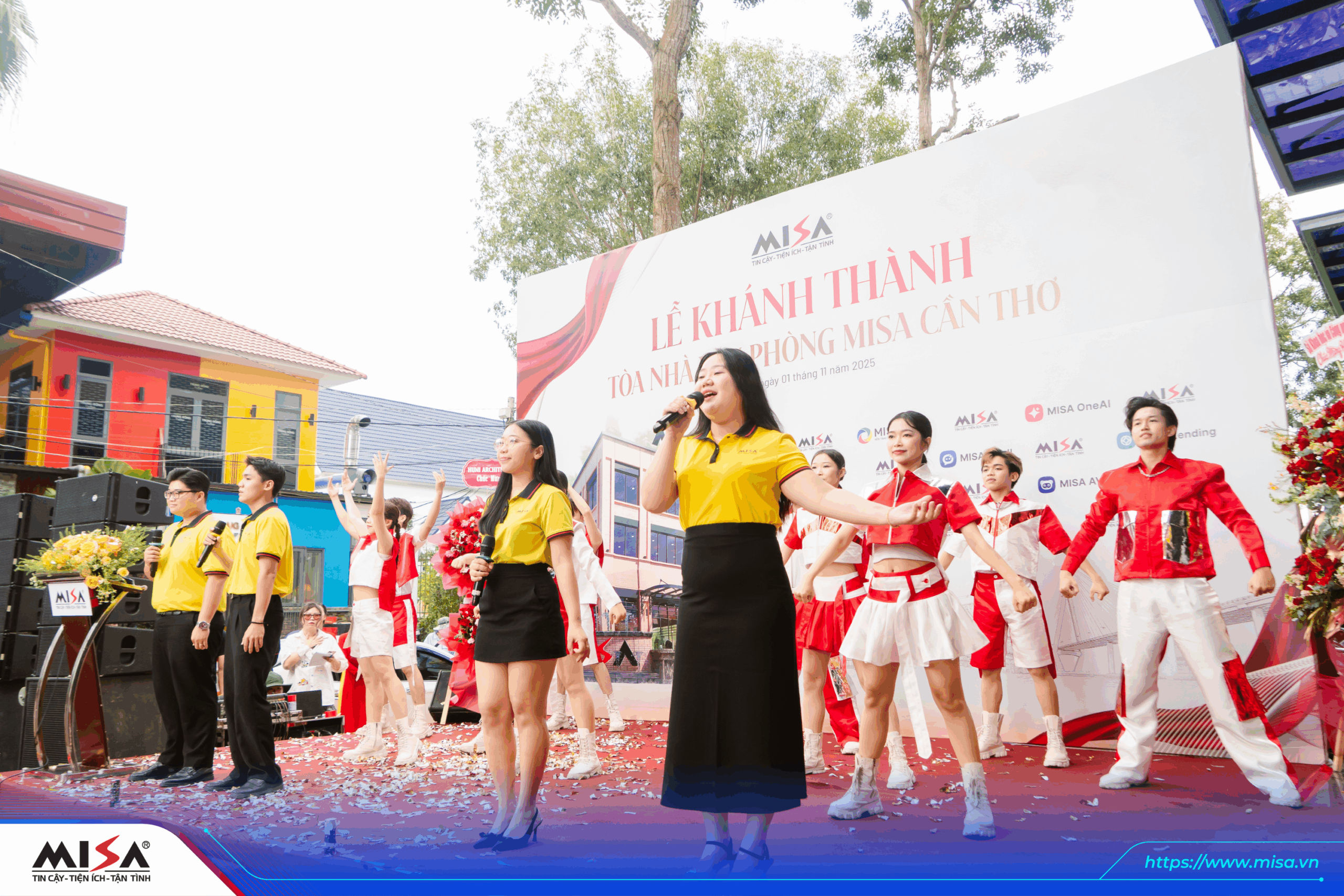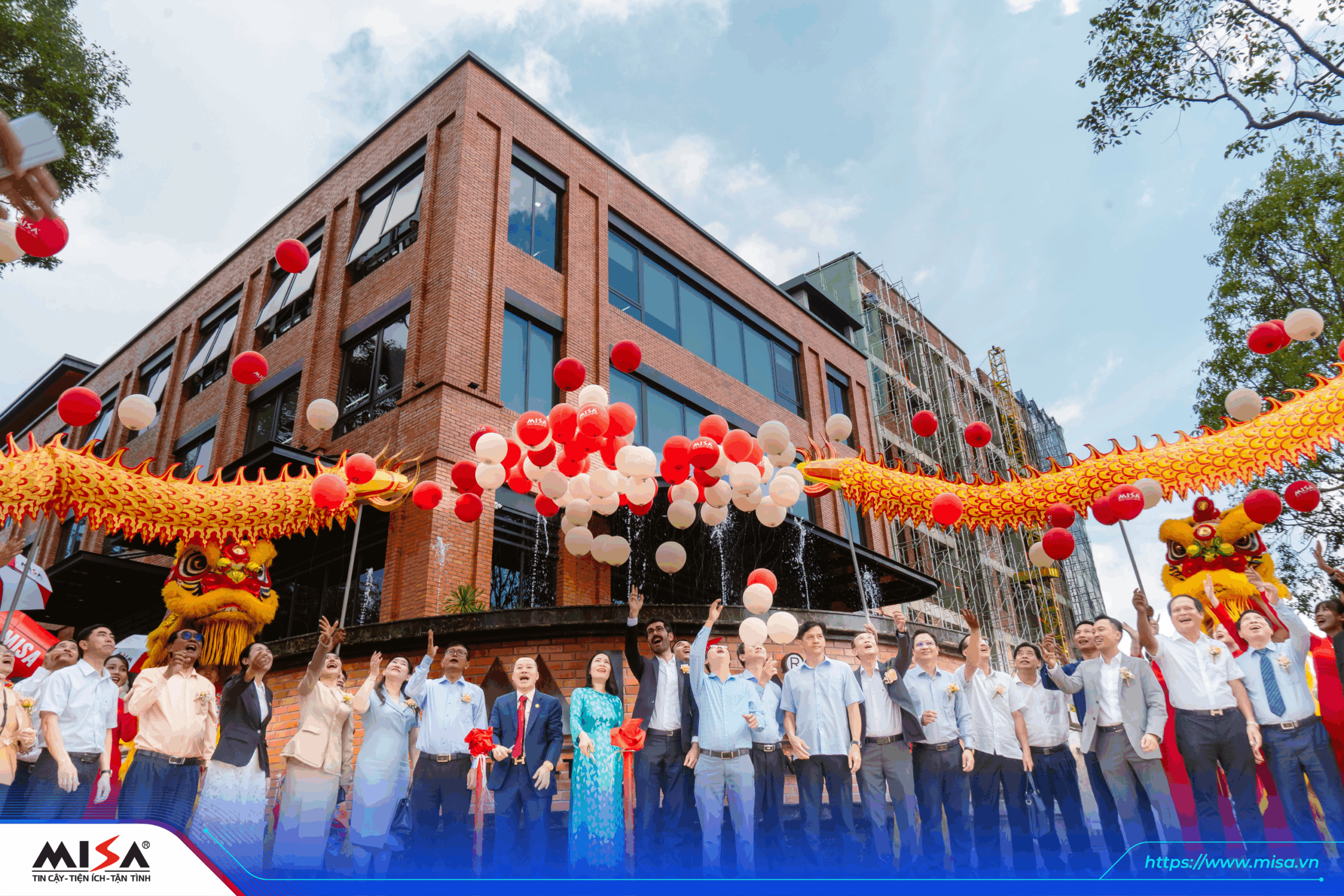 Lễ khánh thành bắt đầu với những tiết mục văn nghệ đầy sắc màu, khuấy động không khí bằng tiếng trống rộn ràng và những lời ca sôi động. Điểm nhấn của buổi lễ là nghi thức cắt băng khánh thành, diễn ra trong không khí trang trọng và tự hào. Bên cạnh đó, màn múa lân chào mừng như một lời chúc tốt đẹp, gửi gắm niềm tin vào tương lai phát triển rực rỡ của MISA.