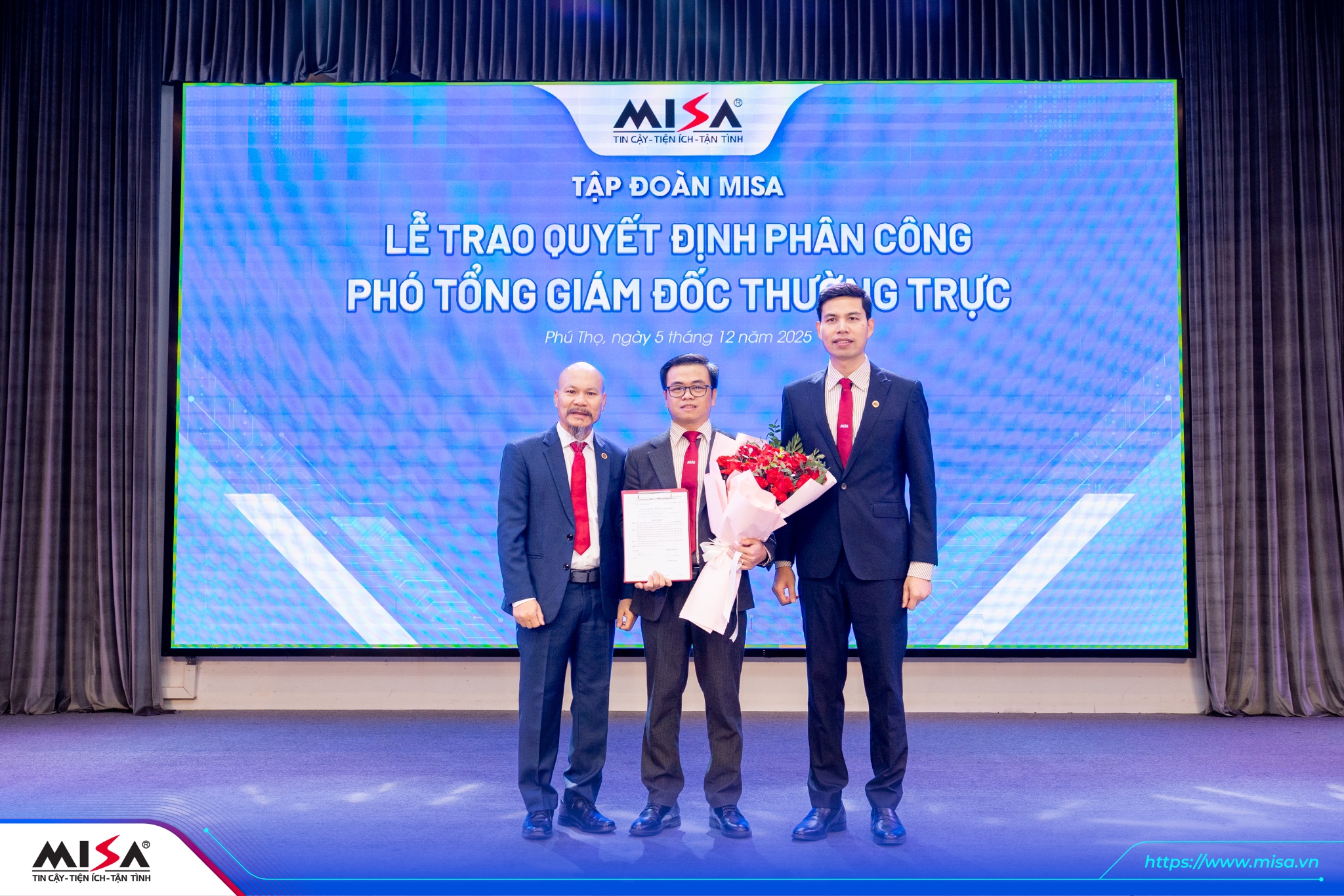 Trong khuôn khổ buổi lễ khai mạc, BLĐ Tập đoàn MISA đã chính thức trao quyết định phân công ông Bùi Thanh Minh – Phó Tổng Giám đốc giữ vai trò Phó Tổng Giám đốc Thường trực, kể từ 01/12/2025. Trong suốt hành trình gắn bó cùng MISA từ năm 2012, ông Bùi Thanh Minh đã để lại dấu ấn đậm nét qua những kết quả tăng trưởng ấn tượng của mảng Sản xuất, cùng với đó là bước tiến mạnh mẽ, thần tốc của các dự án AI tại MISA, góp phần quan trọng vào quá trình chuyển đổi số và tái định vị thương hiệu của Tập đoàn. Thời gian tới, ông Minh cam kết sẽ học hỏi, trau dồi để hoàn thành tốt nhất nhiệm vụ, hỗ trợ đắc lực được cho Tổng Giám đốc để tiếp tục đưa MISA vững vị thế tiên phong, chinh phục những mục tiêu lớn trong giai đoạn mới.