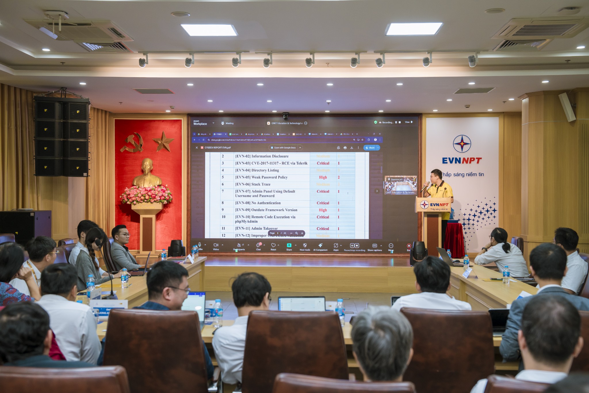 Phát biểu bế mạc chương trình diễn tập thực chiến, ông Nguyễn Văn Hưng – Thành viên thường trực Ban Chỉ đạo An ninh mạng EVN NPT, Trưởng Ban Giám khảo nhấn mạnh rằng chương trình năm nay đã được tổ chức bài bản, nghiêm túc và bám sát thực tế vận hành của các hệ thống công nghệ thông tin trong ngành điện. Ông đánh giá cao tinh thần tham gia trách nhiệm, tính kỷ luật cũng như năng lực chuyên môn của các đội Red Team và Blue Team, đặc biệt ghi nhận chất lượng chuyên môn cao, cách tiếp cận thực tế và hiệu quả của các đội tấn công trong việc mô phỏng các kịch bản tấn công ngày càng phức tạp.