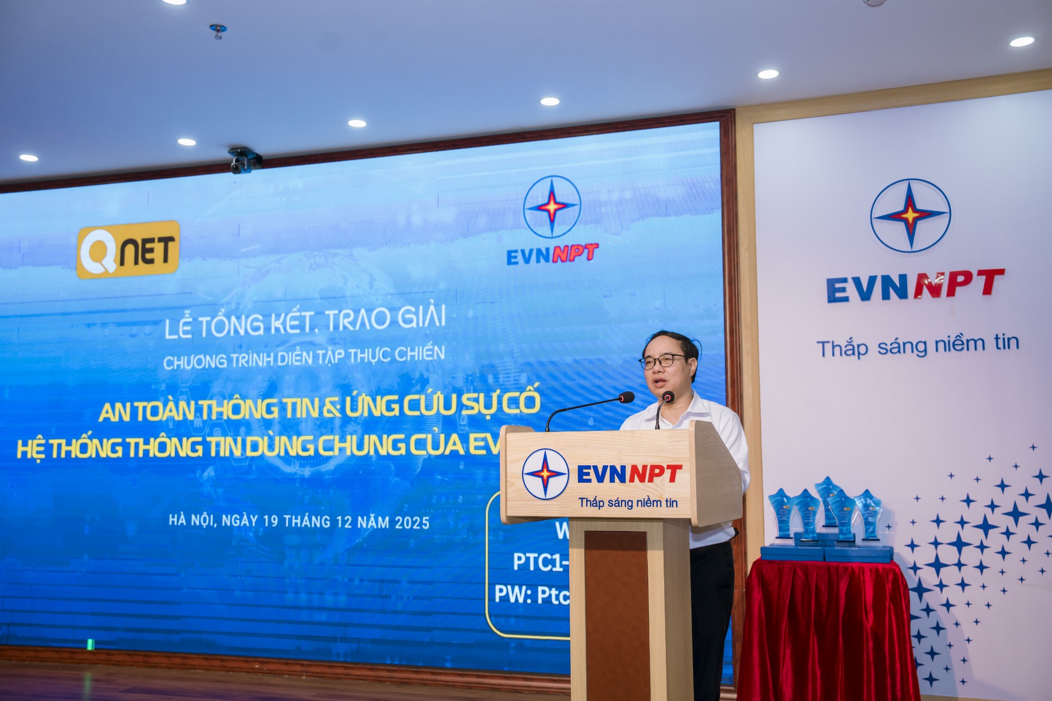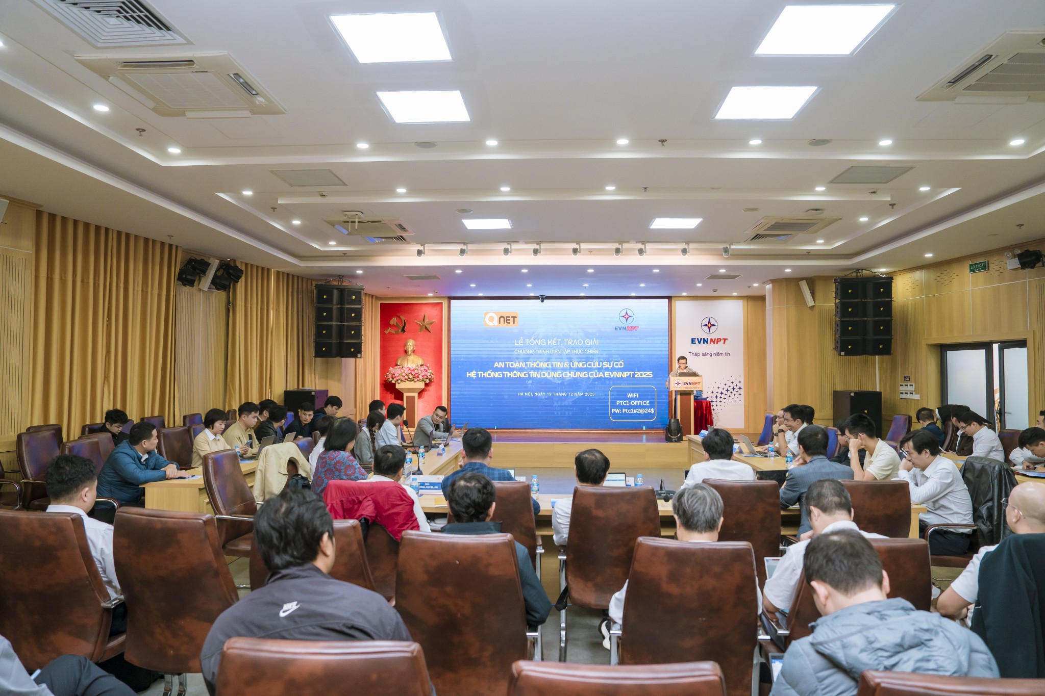 Toàn cảnh Lễ tổng kết Chương trình huấn luyện và diễn tập thực chiến An toàn thông tin & Ứng cứu sự cố hệ thống thông tin dùng chung của EVNNPT năm 2025.