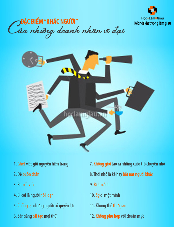 Vì vậy, đừng tin mọi điều những người khác nói về bạn hay cách họ gọi bạn. Có khi chính những thứ được coi là những khó khăn, trở ngại mới thực sự là thế mạnh của bạn. Dưới đây là 12 dấu hiệu nhiều người coi là những khó khăn, nhưng thực ra lại là dấu hiệu cho thấy bạn có tiềm năng trở thành doanh nhân.
