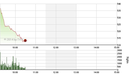 Sau cuộc họp báo của Chính phủ về hành động khiêu khích của Trung Quốc tại Hoàng Sa vào cuối ngày 7/5, thị trường chứng khoán đã có phiên điều chỉnh mạnh nhất kể từ năm 2001. Chỉ số VN-Index đã giảm tới 5,9% hôm 8/5. Các cổ phiếu với yếu tố cơ bản tốt như Vinamilk (VNM) đã ghi nhận mức giảm lớn nhất trong một ngày khi rớt 6,7%. Dược Hậu Giang (DHG) cũng có mức giảm kỷ lục 6,5%.