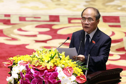 Chủ tịch Quốc hội Nguyễn Sinh Hùng: “Kinh tế trong nước đang chuyển biến tích cực” (ảnh: Việt Hưng).
