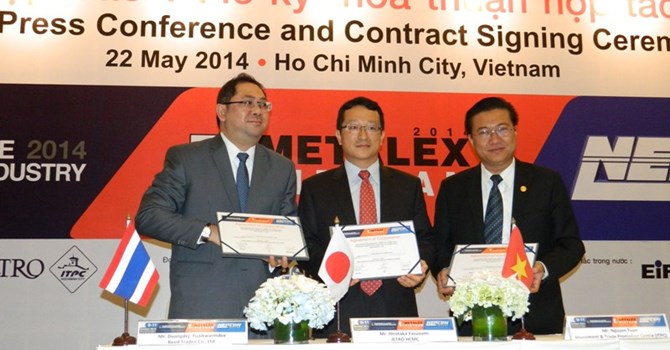 Sáng nay (22/5), tại TP.HCM, Văn phòng Tổ chức Xúc tiến Thương mại Nhật Bản (JETRO) tại TP.HCM, Trung tâm Xúc tiến Thương mại và Đầu tư TP.HCM (ITPC) và Công ty Reed Tradex đã chính thức ký Thỏa thuận hợp tác và thông báo đồng địa điểm tổ chức “Triển lãm Liên minh các doanh nghiệp ngành Công nghiệp hỗ trợ 2014” với “METALEX Vietnam – NEPCON Vietnam 2014”.