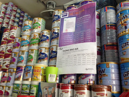 Tại một siêu thị ở khu đô thị Trung Hòa – Nhân chính (Hà Nội), nhân viên bán hàng cho hay, giá các loại sữa hộp cho trẻ dưới 6 tuổi vẫn được niêm yết như trước đây. Một số nhãn sữa tại đây hiện đang có giá bán là: grow 1- 2 – 3 có các mức giá 168.000 đồng/hộp – 160.000 đồng/hộp – 150.000 đồng hộp trọng lượng 400g; Friso gold 900g có giá 460.000 đồng/hộp…