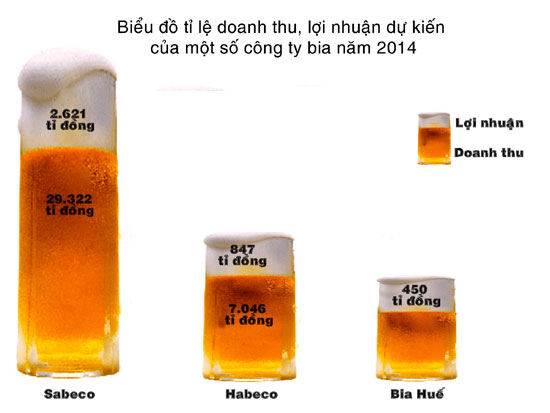 Năm qua, bất chấp sự cạnh tranh khốc liệt và thách thức từ thị trường cho tới chính sách, nhiều hãng bia đã bị thu hẹp thị phần, nhưng lợi nhuận nhìn chung vẫn tiếp tục tăng trưởng. Theo báo cáo tài chính 2013 của Sabeco, đơn vị này sản xuất và tiêu thụ 1,32 tỷ lít bia Sài Gòn các loại. Doanh thu đạt 28.707 tỷ đồng, tăng 12% so với cùng kỳ năm trước; lợi nhuận sau thuế đạt 2.495,4 tỷ đồng; mức chia cổ tức đề xuất cho năm 2013 là 23%.