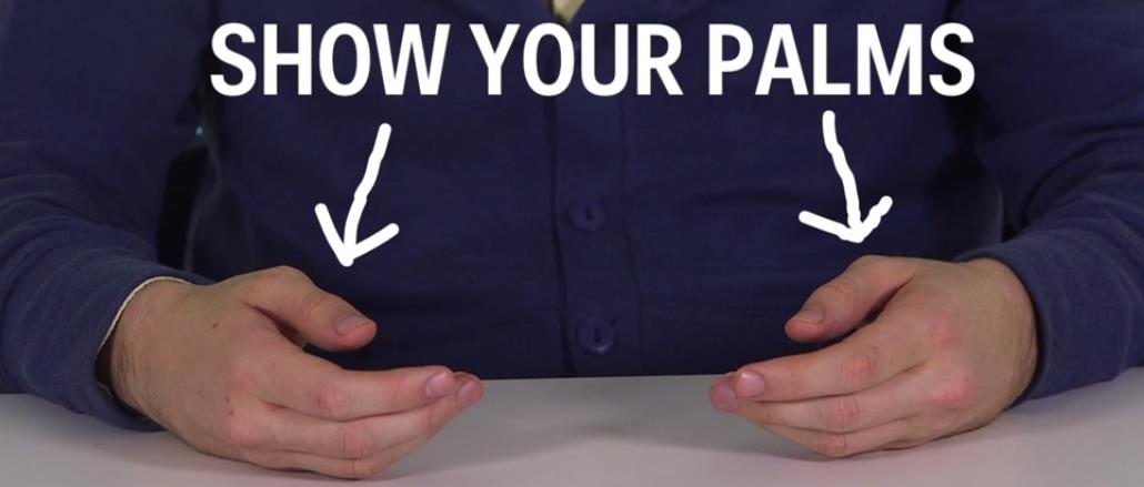 Nếu bạn đặt hai tay lên đùi hay bất kì đâu khuất khỏi tầm mắt của người trao đổi trực tiếp, bạn giống như đang che giấu chuyện gì đó vậy. Hoặc có thể bạn đang bịa đặt điều gì đó khi phỏng vấn?