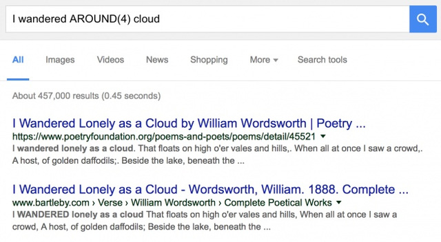 Nếu đó là một cụm từ mà đến… phân nửa bạn không thể nhớ chứ không phải 1 từ duy nhất, hãy viết ra những từ đầu tiên và từ cuối cùng, đồng thời chèn cụm từ “AROUND + (số lượng gần đúng các từ còn thiếu)” vào giữa chúng.