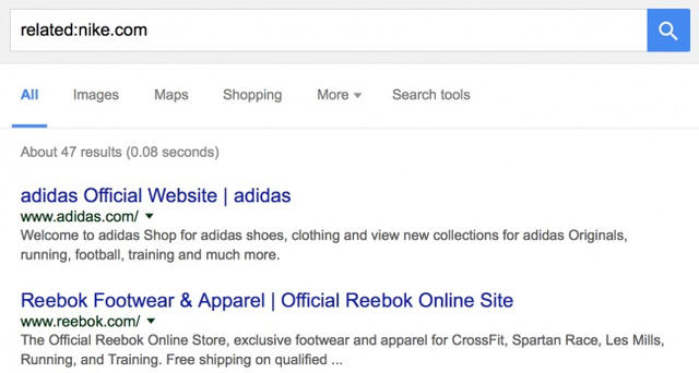 Nếu bạn tìm thấy điều gì đó thú vị trên mạng và muốn tìm các trang web tương tự, bạn có thể gõ “related:” sau đó là địa chỉ trang web và không gõ dấu cách.
