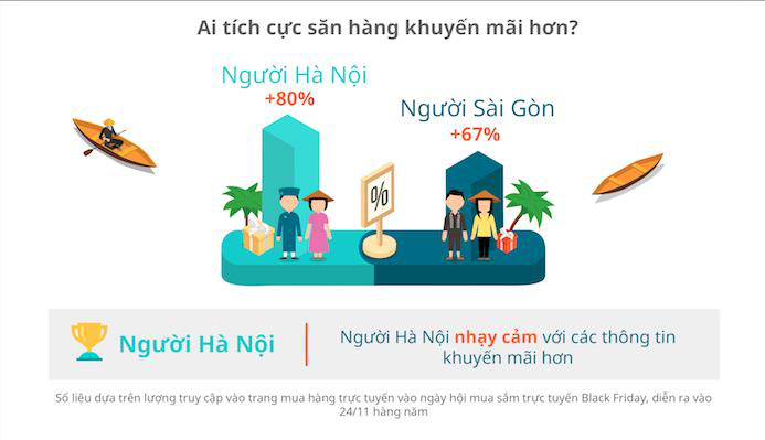 Vào ngày hội mua sắm trực tuyến Black Friday, lượng truy cập vào các trang bán hàng trực tuyến tăng đột biến ở cả hai thành phố, cho thấy mức độ nhạy cảm của người Việt về các thông tin khuyến mãi.