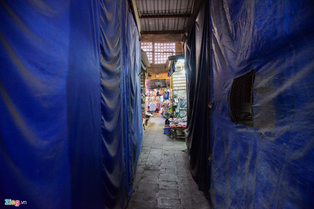 Bước vào trong, không ai còn nhận ra khu chợ hạng 1 của thành phố một thời. Trước đây, chợ vốn đông đúc, kinh doanh buôn bán sầm uất. Bây giờ, hàng loạt các kiốt bị phủ bạt, đóng kín.