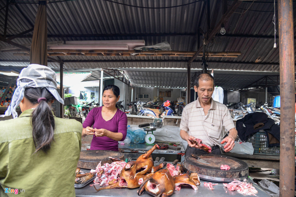 Anh Nam (Âu Cơ) cho biết ngày trước cả một dãy chợ bán thịt chó nhưng mấy năm trở lại đây các cửa hàng mọc lên nhiều, chỉ duy nhất còn quán nhà anh bán mặt hàng này tại chợ.