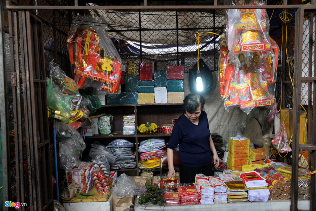 Hôm sau là ngày mùng 1 nhưng gian hàng bán đồ mã của bà Thu vẫn thưa khách: “Bây giờ tạp hóa nào cũng bán vàng mã. Khách ngại đi vào trong chợ để mua hàng. Ngày trước quán tôi tấp nập lắm”.