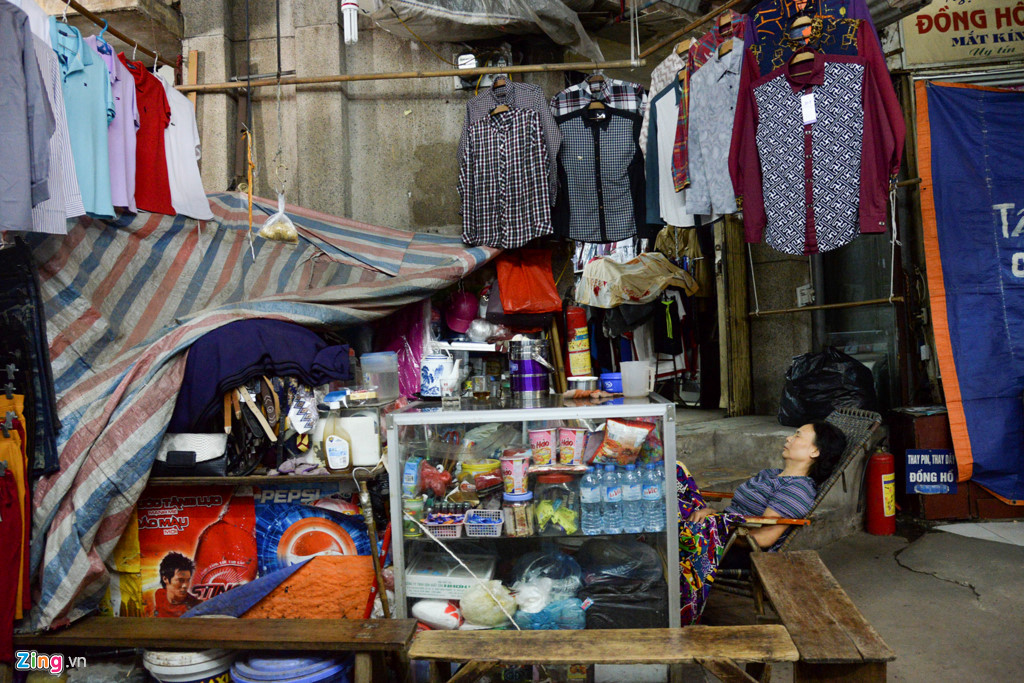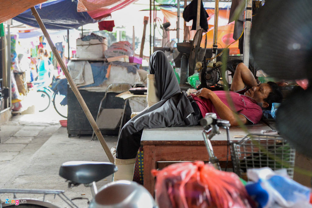 Đã xế chiều nhưng một người phụ nữ với quầy hàng bán nước vẫn chìm trong giấc ngủ. Một tiểu thương ở gian hàng bên cạnh cho biết chị vốn bị câm điếc, đã bán hàng ở chợ chục năm nay. Bây giờ không biết ra ngoài làm được gì nên ngày ngày chị vẫn dọn quán rồi tối đóng cửa đi về. Do không có khách nên chị này nằm nghỉ ngơi.