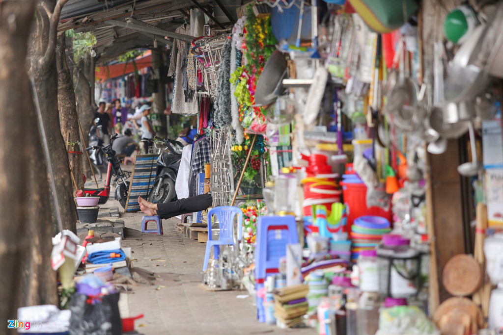 Dãy chợ này trước đây là các gian hàng bán hàng thùng, nhưng do kinh doanh ế ẩm nhiều người chuyển sang bán xôi hay rau củ.