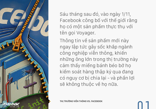 Kẻ nỗ lực làm điều đó không ai khác chính là Facebook – mạng xã hội lớn nhất hành tinh mà nguồn doanh thu chủ yếu tới từ quảng cáo trực tuyến – với mục tiêu cố gắng kiểm soát chính vấn đề hạ tầng kỹ thuật. Rủi ro cho các công ty viễn thông đang lớn hơn bao giờ hết, khi họ bắt đầu chứng kiến những sản phẩm của mình có nguy cơ trở thành một thứ hàng hoá rẻ rúng.