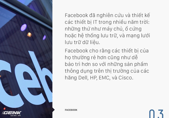 Facebook đã nghiên cứu và thiết kế các thiết bị IT trong nhiều năm trời: những thứ như máy chủ, ổ cứng hoặc hệ thống lưu trữ, và mạng lưới lưu trữ dữ liệu. Facebook cho rằng các thiết bị của họ thường rẻ hơn cũng như dễ bảo trì hơn so với những sản phẩm thông dụng trên thị trường của các hãng Dell, HP, EMC, và Cisco.