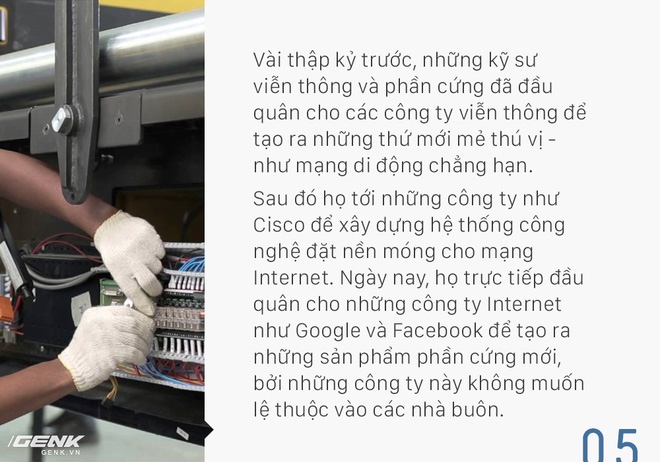 Ông cũng cho rằng còn một vấn đề nữa không kém phần quan trọng, bên cạnh nguồn ngân sách có hạn và sức tăng trưởng khổng lồ – đó là cuộc chiến nguồn nhân lực. Vài thập kỷ trước, những kỹ sư viễn thông và phần cứng đã đầu quân cho các công ty viễn thông để tạo ra những thứ mới mẻ thú vị – như mạng di động chẳng hạn. Sau đó họ tới những công ty như Cisco để xây dựng hệ thống công nghệ đặt nền móng cho mạng Internet. Ngày nay, họ trực tiếp đầu quân cho những công ty Internet như Google và Facebook để tạo ra những sản phẩm phần cứng mới, bởi những công ty này không muốn lệ thuộc vào các nhà buôn.