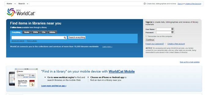 Kết nối với khoảng 72.000 thư viện của 170 quốc gia và vùng lãnh thổ trên thế giới, nó được gọi là Thư viện của các thư viện. Thông tin ở đây tất nhiên phong phú và đa dạng nhưng nó hữu ích nhất đối với những ai muốn tìm tư liệu trích dẫn cho nghiên cứu tiến sĩ của mình.