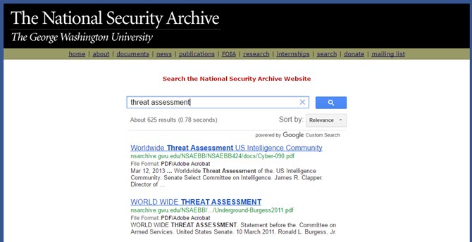 Đây là cơ sở dữ liệu phi chính phủ lớn nhất đối với các loại thông tin về chính sách và lịch sử quốc phòng và ngoại giao cũng như chính sách tình báo. Tất nhiên, các tài liệu này không có gì là quá “mật” và được dán nhãn “được phép tiếp cận”.