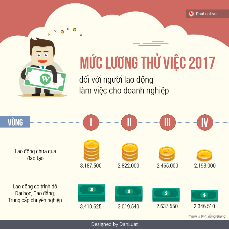 2. Mức lương thử việc 2017 đối với người lao động làm việc cho doanh nghiệp: