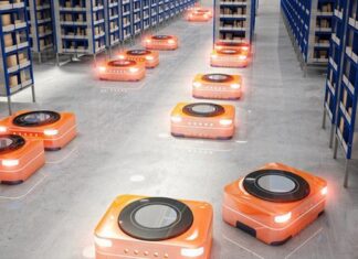 Bulter, một con rô bốt màu cam với dáng dẻ mập mạp đang di chuyển qua lại giữa các lối đi để lấy tất...