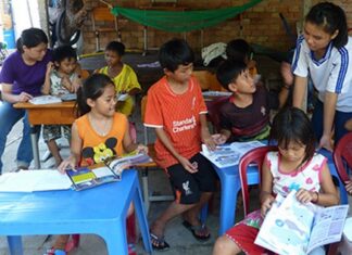 Lớp học tình thương dành cho các trẻ nhập cư đã được duy trì hơn một năm nay nhờ người dân cho mượn chỗ...