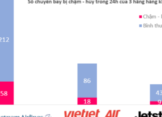 Những con số thống kê về “năng lực” chậm hủy chuyến bay của 3 hãng hàng không nội địa Vietnam Airlines (VNA), Vietjet Air...